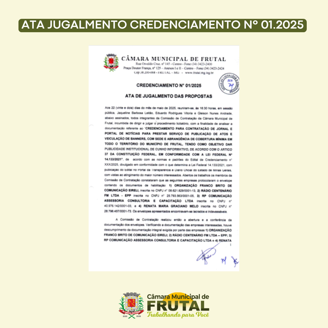 Site oficial da Câmara Municipal de Frutal - MG