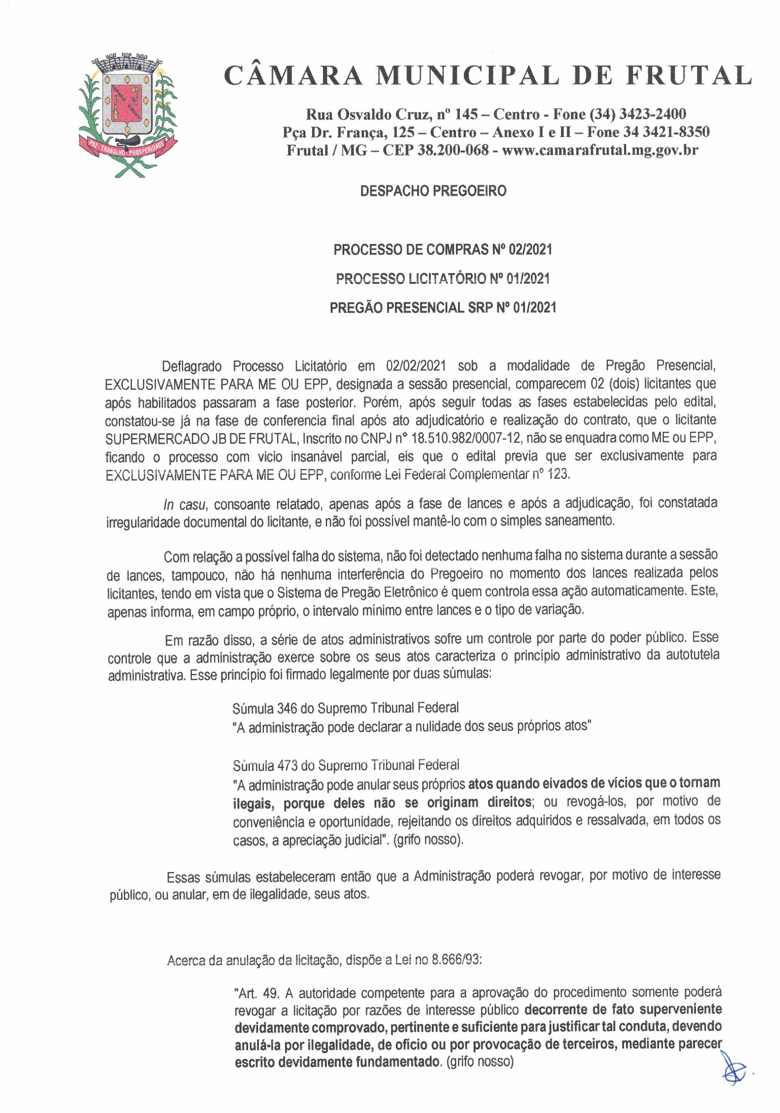 Site oficial da Câmara Municipal de Frutal - MG